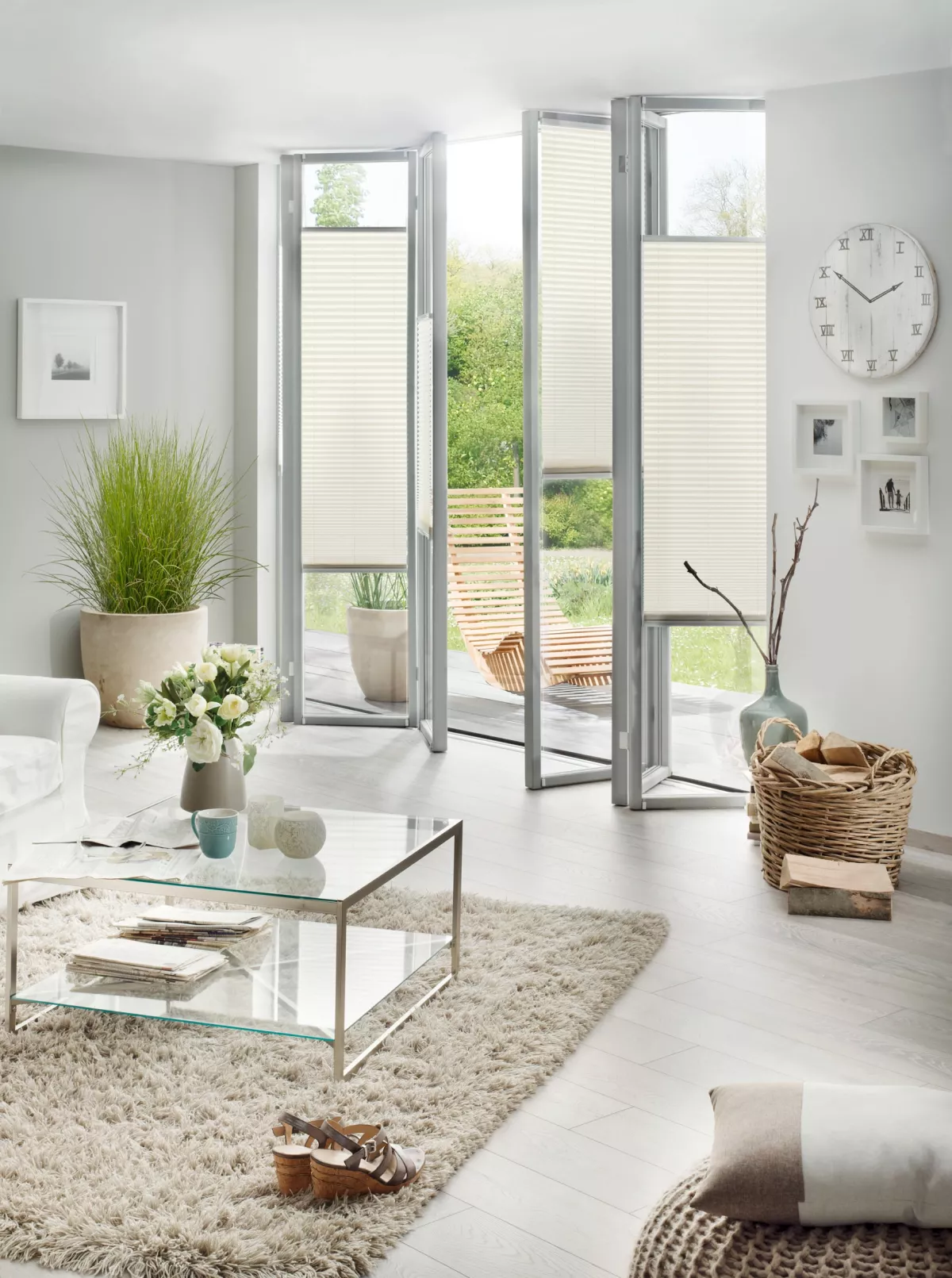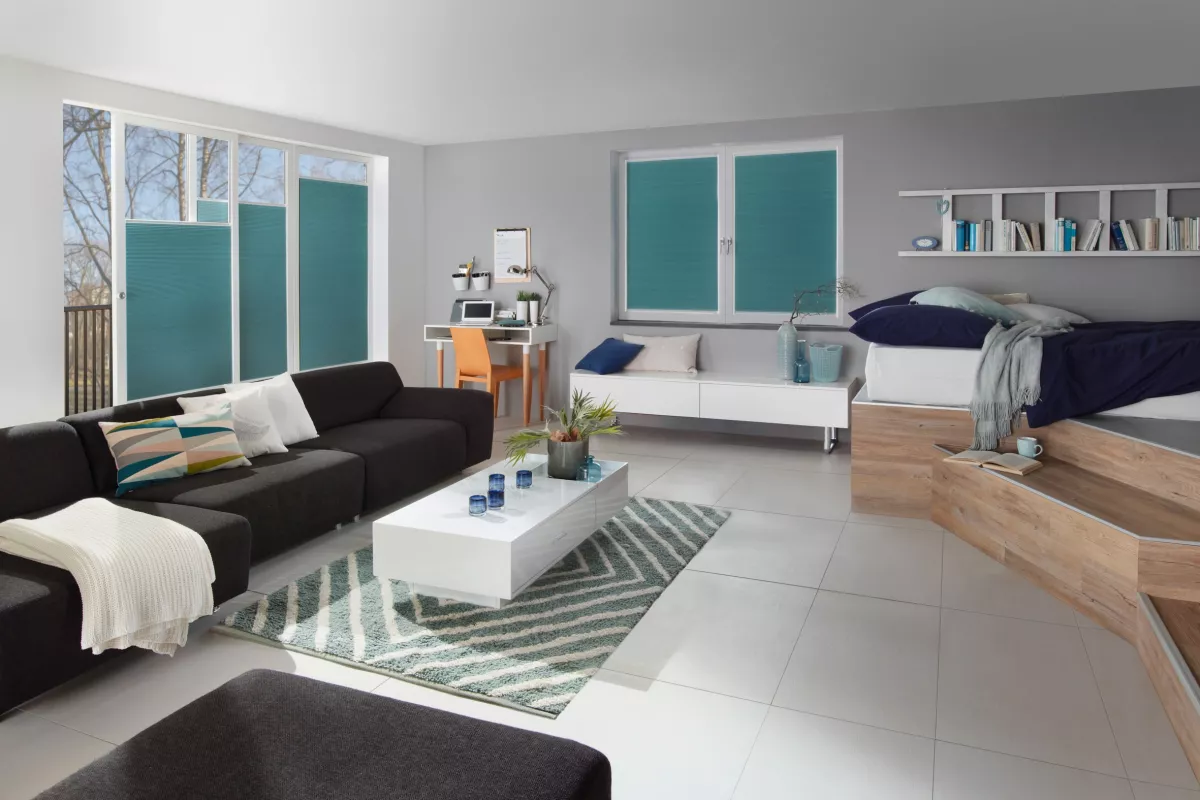 Avec ses profils ultra-fins de seulement 16 mm et ses plis de tissu très étroits, il s’intègre de manière discrète, quelle que soit la position du vitrage.